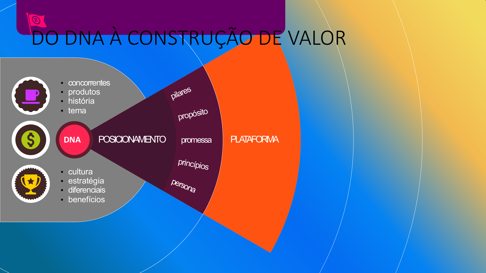 A plataforma de marca é a síntese operacional de todo esse trabalho. É um documento vivo que organiza a essência da marca em componentes claros e acionáveis.