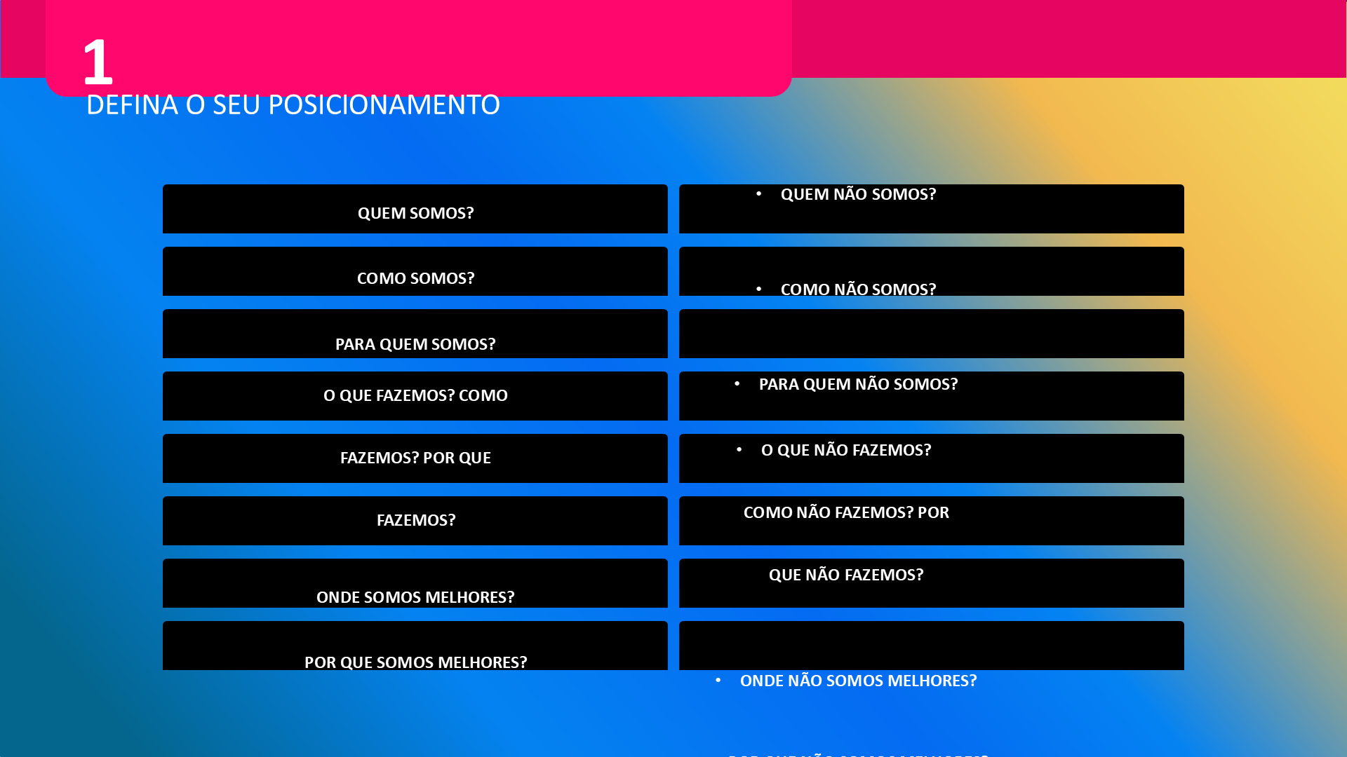 Posicione sua marca em cada par de opostos para definir o perfil de atributos: